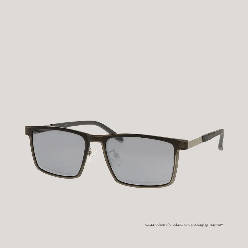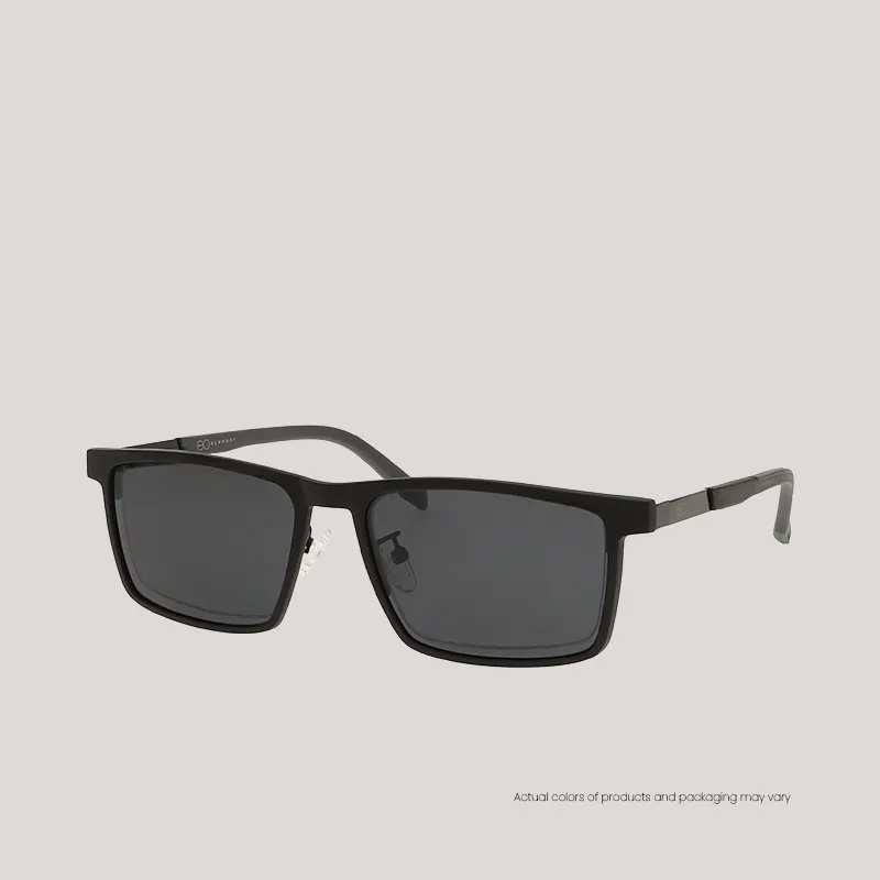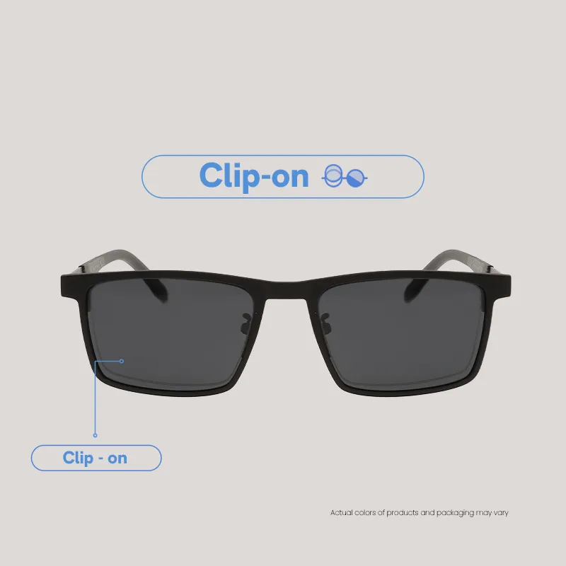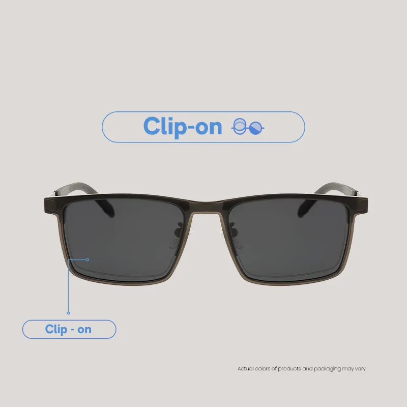 EO Eyewear Ace | Rectangle Eyeglasses for Men and Women | Lightweight Metal Half Rim Frame with Polarized Clip On