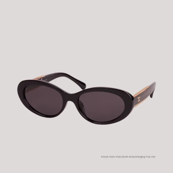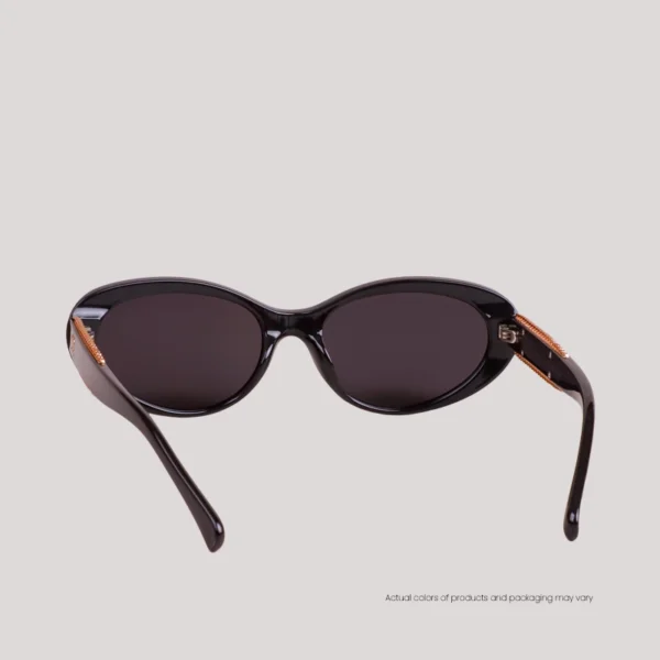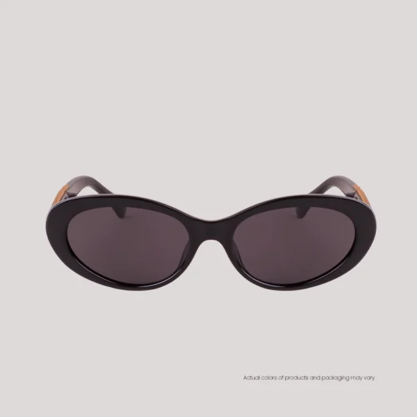 Look sharp and refined with EO Shields TR2547. Designed with a glossy black acetate frame, these cat-eye shades exude a polished look, complemented by a classy touch–solid gold frills line the sides of their temples, adding a subtle, twinkling contrast for a bit of surprise.